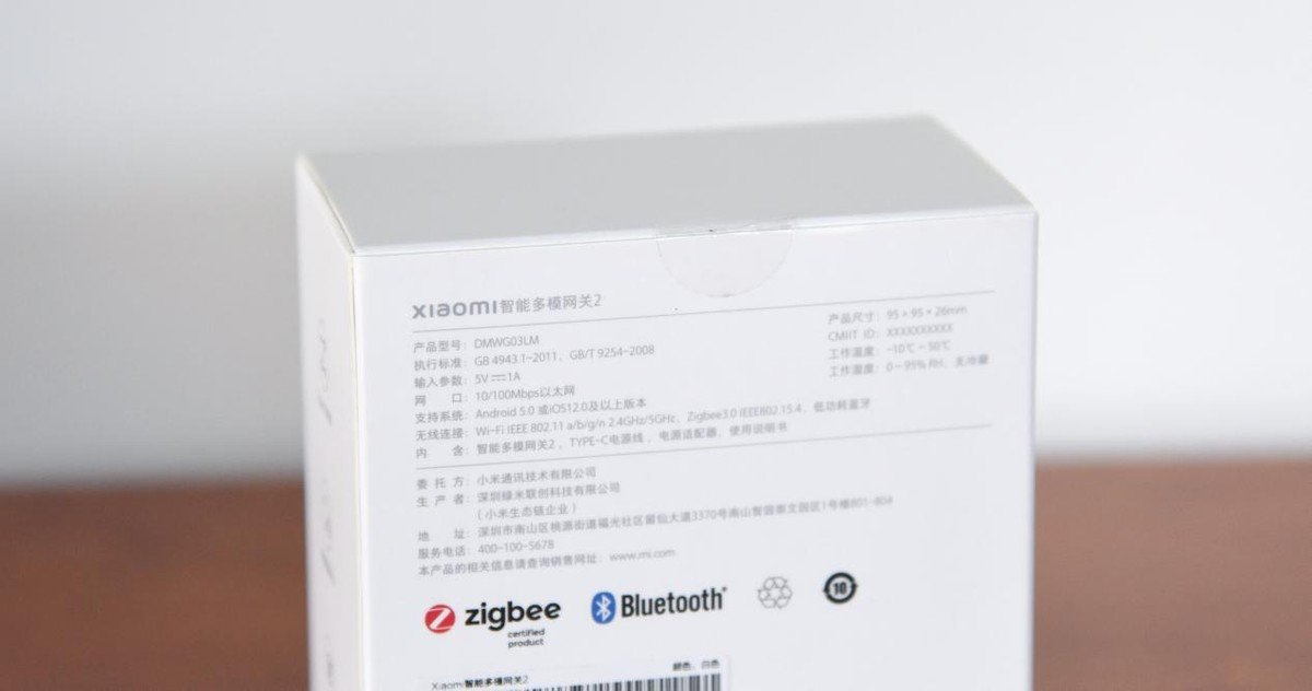 先来看看外观,小米智能多模网关2外包装依然非常简约,正面显示接入米家标志。生产厂商为小米生态链企业:绿米联创,并且支持三种主流协议(蓝牙、蓝牙 Mesh、Zigbee)。
