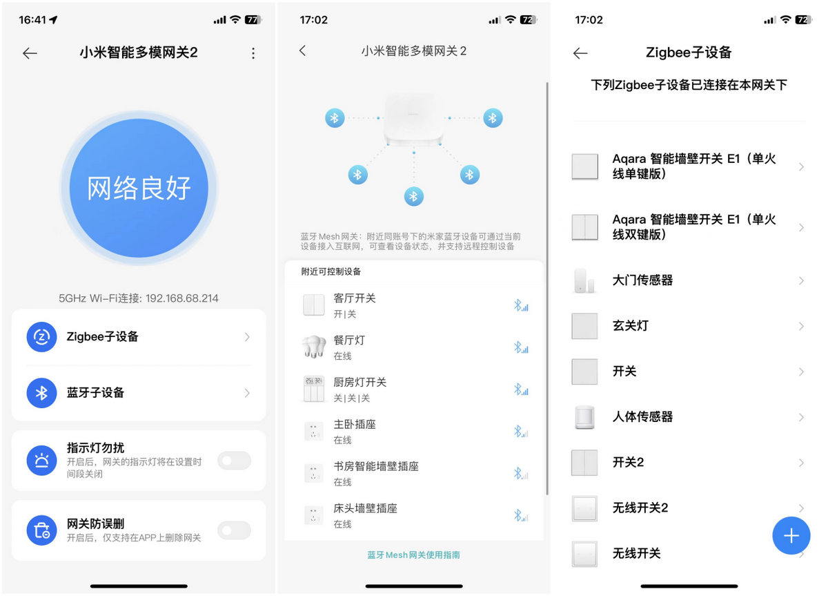 略微比较麻烦的是没有Zigbee设备一键迁移功能,替换下多模1代网关后,还要去将一个一个开关设备重置连接。