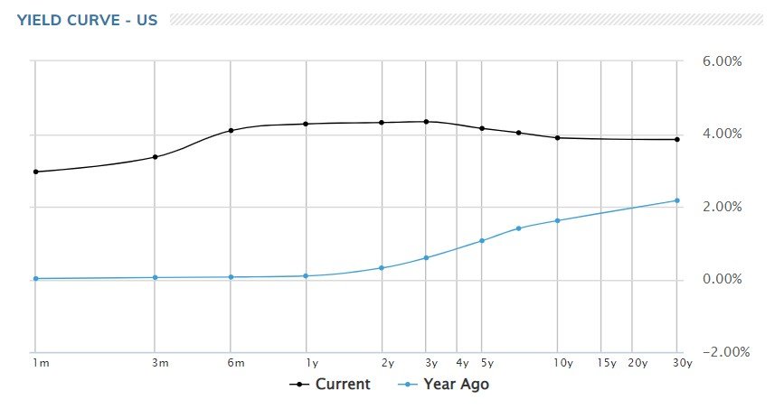 在以上一系列因素的刺激之下,美国国债收益率不断飙升,10年期美债收益率今日再度突破4%大关。2/10年期、10/30年期美债收益率倒挂幅度也在不断加剧,由此可见市场对于经济衰退的预期不断升温。