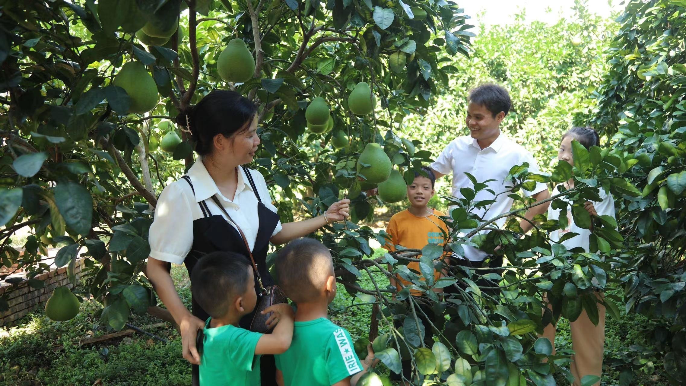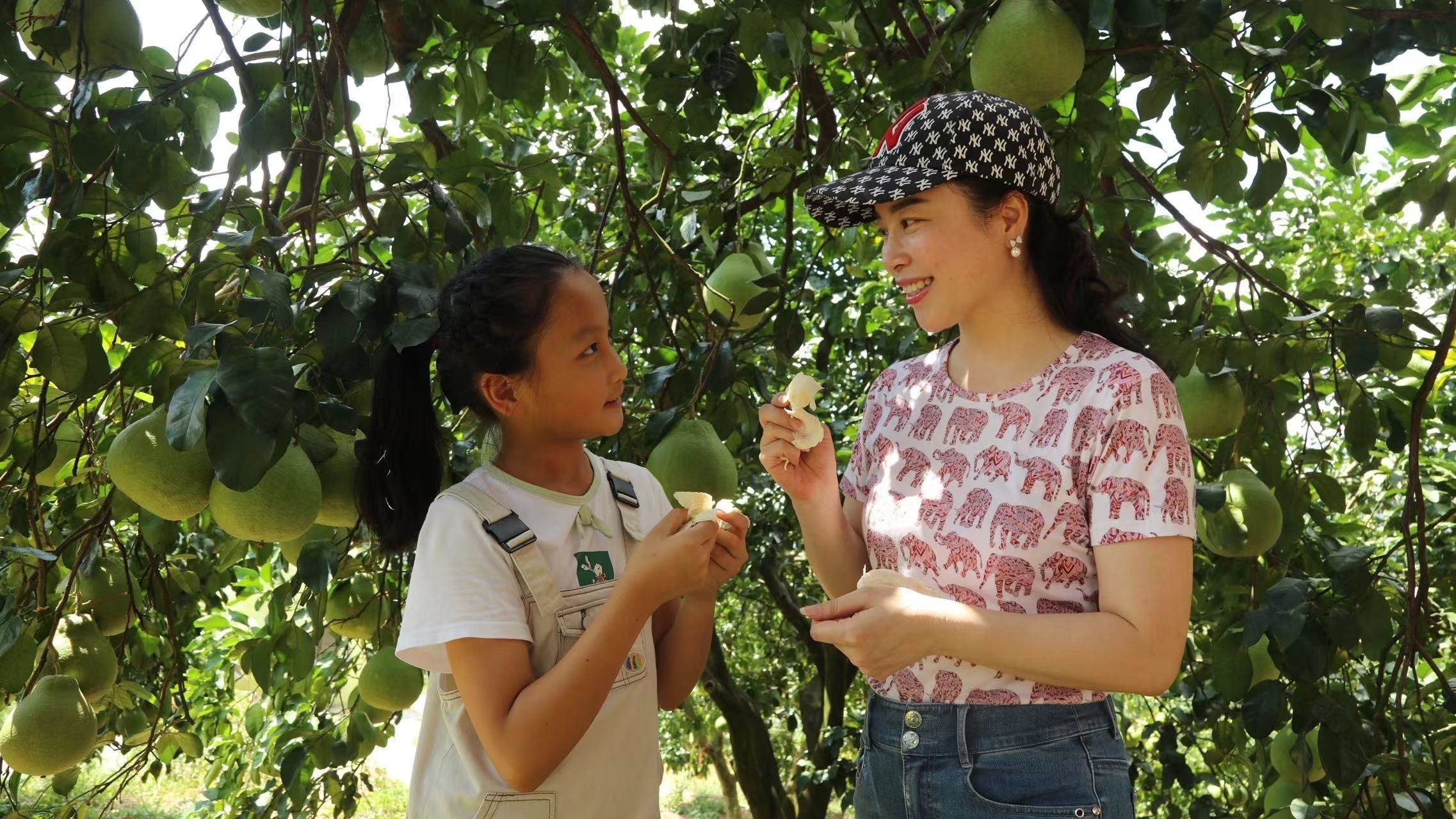 国庆期间,江永县粗石江镇云雾山香柚产业园,硕果压枝头,一派丰收景象,吸引了不少游客观光揽胜。来自长沙的何丹艳带着家人和朋友闻香而来,体验一把采摘蜜柚的乐趣,她开心地说:“江永县香柚远近闻名,我昨天驱车几百公里从长沙来到江永,这里的蜜柚又香又甜,就像我们的生活现在是越过越好,甜甜蜜蜜。”