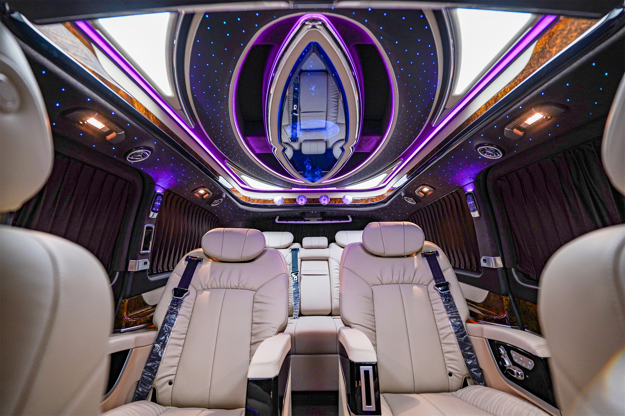 外观方面,奔驰VLS600普曼天玑版采用新款迈巴赫同款前脸造型,加以前后大包围,还有普曼专属车标,整车外观庄重大气。