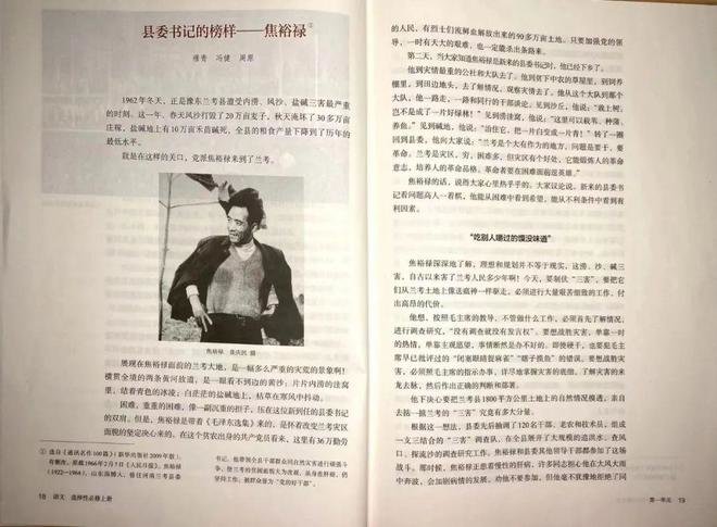 如今,《县委书记的榜样一一焦裕禄》长篇通讯登上高中语文选择性必修上册教材。焦裕禄向其亲密战友张钦礼诉说临终遗言的感人情景跃然纸上。
