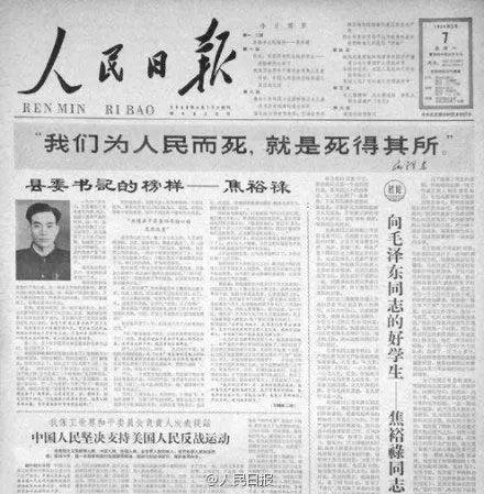 1966年2月7日清晨,《人民日报》头版头条发表了由穆青、冯健、周原三人合作的长篇通讯《县委书记的榜样——焦裕禄》并配发了社论。长篇通讯的播发,在全国引起了强烈反响,震撼了中华大地,感动了亿万人民的心灵。焦裕禄带领全县干部群众与自然灾害顽强拼搏的事迹,激发了全国人民战胜困难、艰苦奋斗的决心,引发了全国学习焦裕禄的热潮,成千上万的人到兰考参观学习,焦裕禄的名字也从此传遍大江南北。