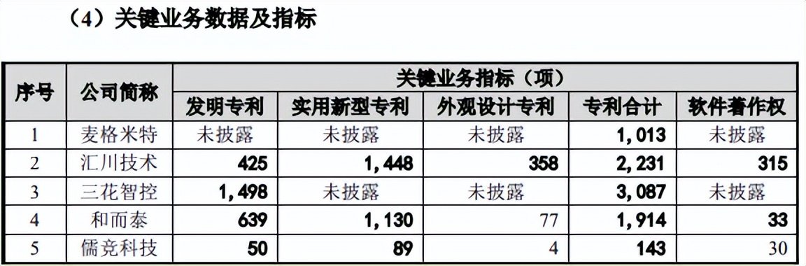 在研发费用的绝对金额上,儒竞科技还远落后于同行竞争者,专利数目也是少得可怜,被同行甩几条街,发明专利仅有50项。