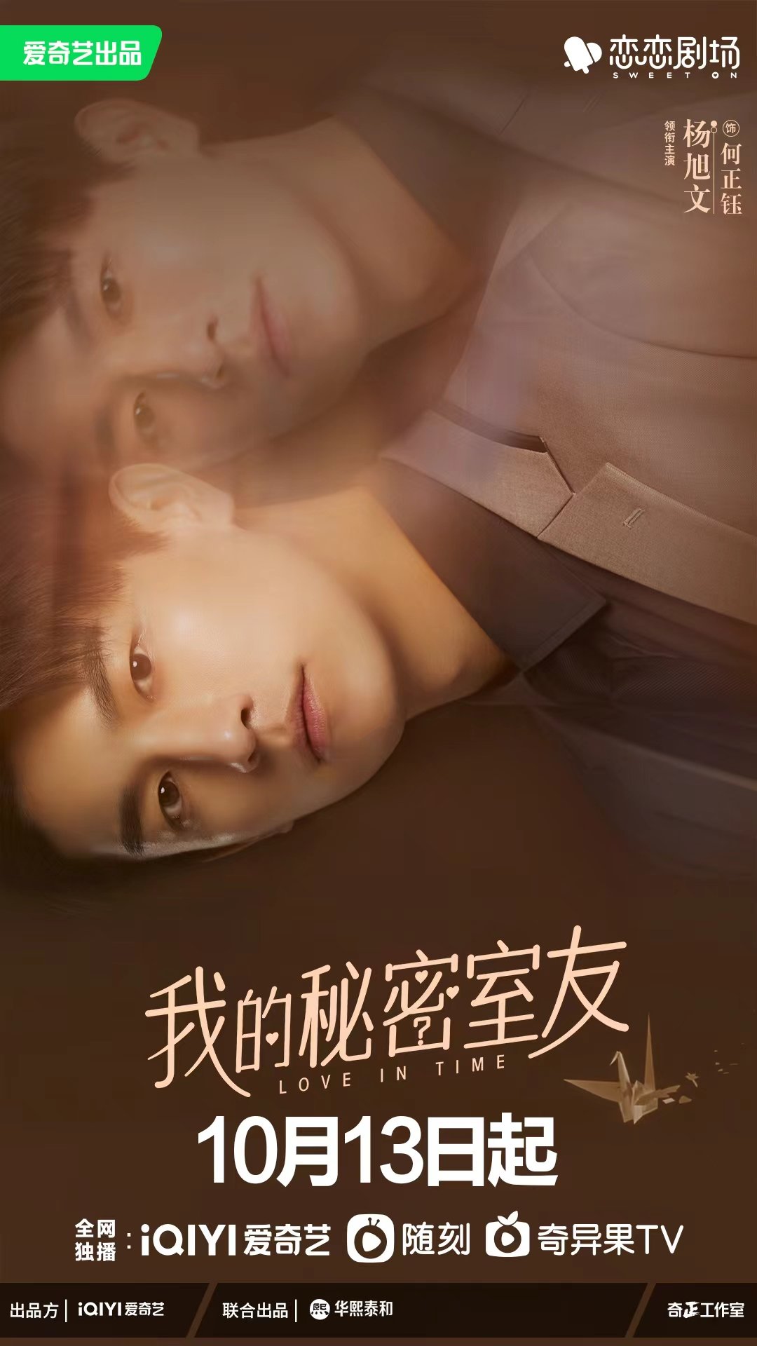 据了解,杨旭文的另一新作《我的秘密室友》10月13日已接档开播,该剧由北京爱奇艺科技有限公司出品,北京华熙泰和影视有限公司联合出品,赵锦焘导演,杨旭文、向涵之领衔主演的都市奇幻爱情剧在爱奇艺恋恋剧场独播。该剧讲述的是金牌律师何正钰在经历事业滑铁卢后,搬进一间老公寓,在某种神秘力量下,与来自几个月前时空的热血女记者陈嘉岚相遇并被迫成为了“室友”,两人因每晚46分钟的时空融合,开始了一段穿越时空的爱恋。此次杨旭文在剧中饰演王牌律师何正钰,事业挫折与爱情考验让他在时空相隔之下产生同一人物的不同性格,反差感极强的人设又会发生哪些甜甜的恋爱故事,让人十分期待。