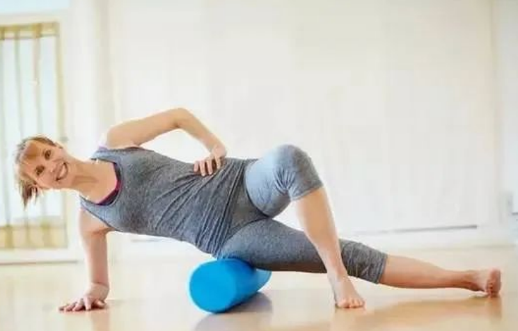 动作要点:可借助泡沫轴,运用自身体重来回搓滚髋部及大腿外侧,可感明显疼痛酸胀感,双侧对称进行3分钟。