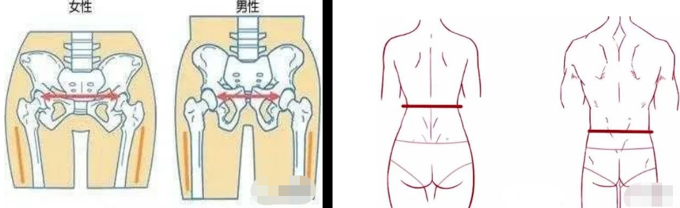 可事实真是如此吗?这个伪概念混淆了髂嵴间径和大转子间径的概念,事实是人体的骨盆一定是大转子间径>髂嵴间径的,女性骨盆较男性骨盆宽、扁,所以女性的转子间宽会比男性的要明显。