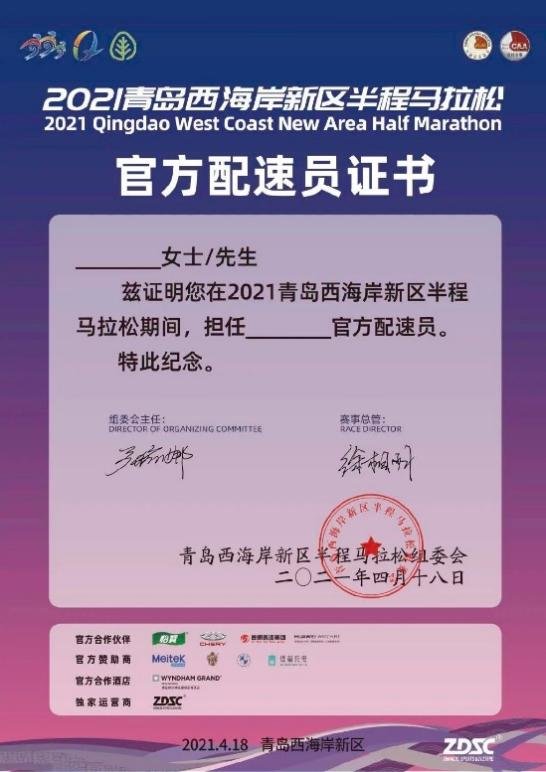 4、2022青岛西海岸半程马拉松官方配速员专属号码布;