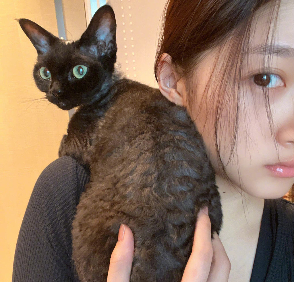 2022年10月12日,关晓彤发布抱猫怼脸自拍。