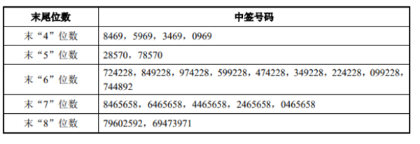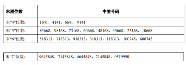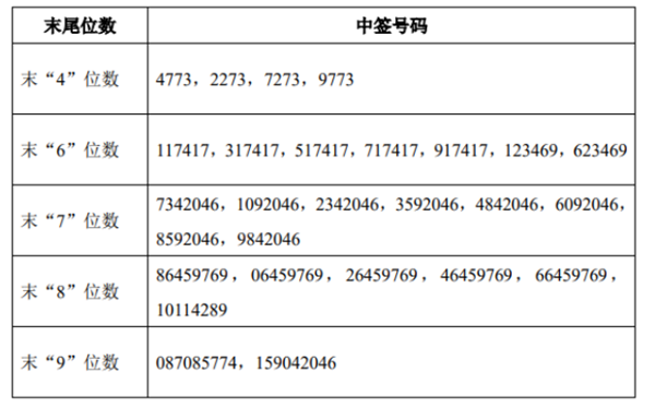 中签号码如下: