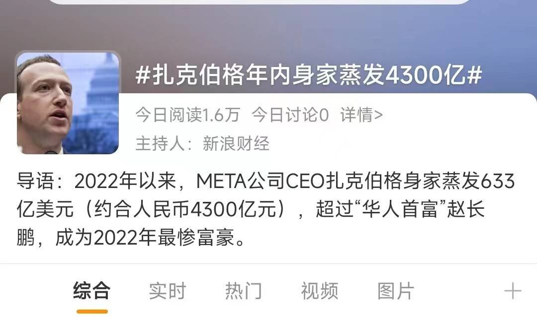 而扎克伯格的身价嘛,也随着公司各种碰壁大幅缩水。