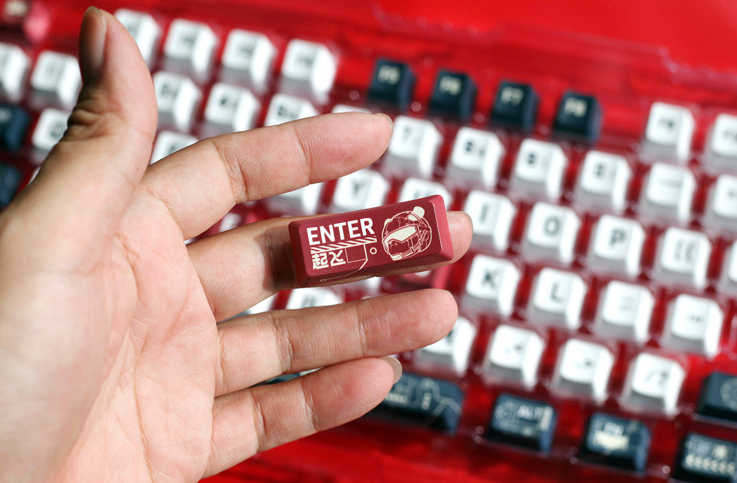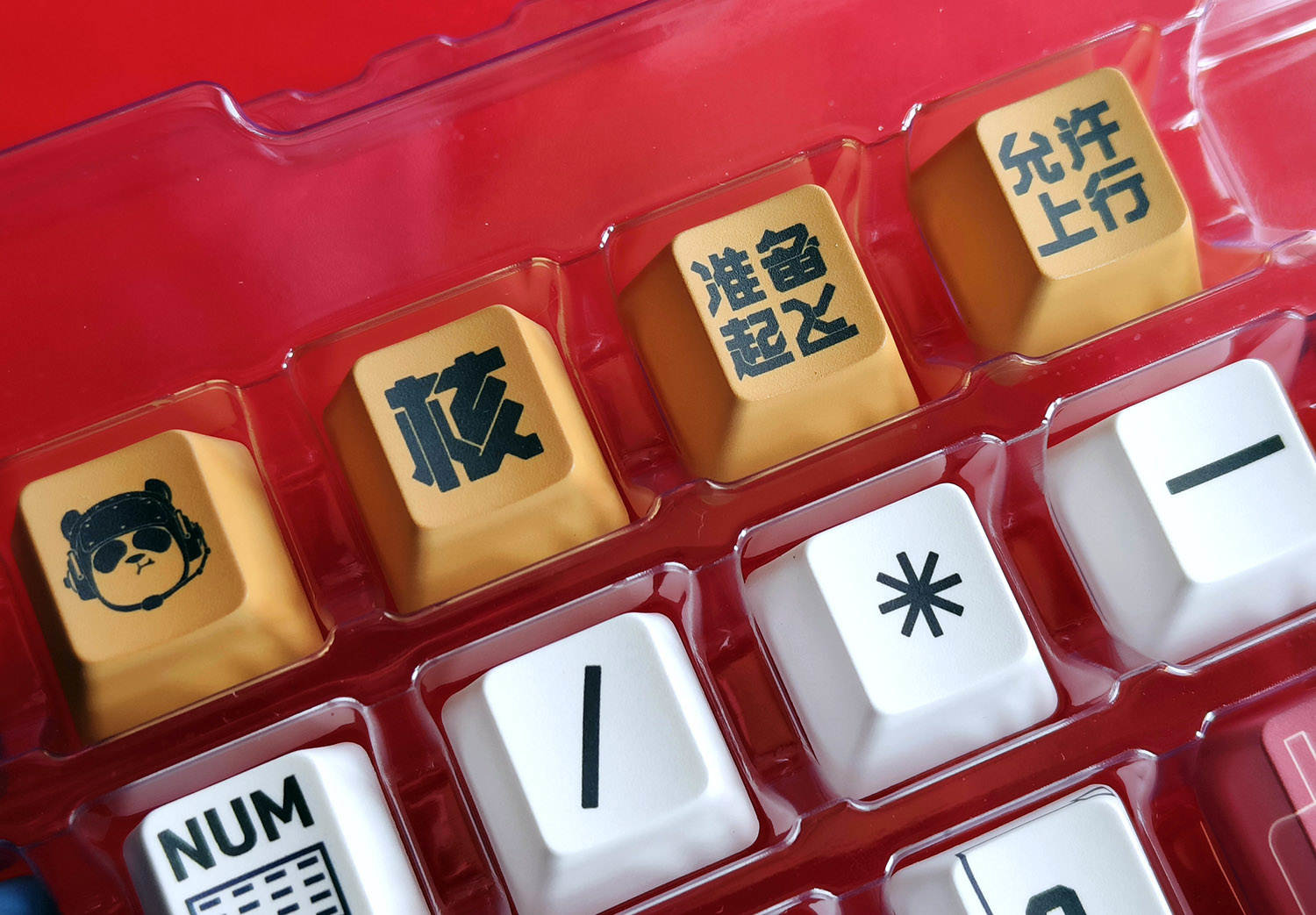 先说说这个“舰载熊猫”主题的键帽,其配色并非黑与白,而是深蓝色、暗红色、金色与白色搭配,还有熊猫主题的图案,颇有一些机甲风格。之所以看起来这么漂亮,是因为Lofree洛斐的键帽全部采用自主开发的高精密模具,拥有独一无二的美学感受哦!