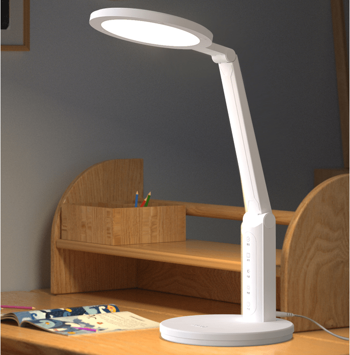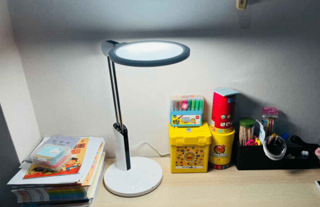 这款台灯的特点在于18cm的发光直径,有255cm²的有效光源面面积,通过大功率精滤光,环形侧发光技术,经过三层过滤,提高光效的利用率,散光均匀更明亮,全等采用的是RG0无蓝光危害灯珠,台灯有三档色温调节,延时关灯,25分钟番茄计时提醒,最后是人性化有自动感应环境光的调光功能,匹配调节到合适的亮度,台灯简单功能多,就是在质量上希望有所提升。