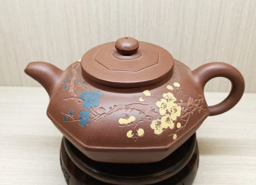 最精妙的还有紫砂壶的纹理、字画及其蕴含的艺术价值。品赏集贤轩紫砂壶,既有素壶,也有以纹理见长的作品,例如树桩壶,其造型纹理形神兼备,仿佛就是一截松树墩的艺术再造;再如瓜棱壶,那弧形线条之精美,是创作者功力的体现。更多的则是载有字画的紫砂壶珍品,例如有一把秦权壶,上刻一幅盛开的兰花,有画作的加持,这把壶的艺术价值显得更加突出。