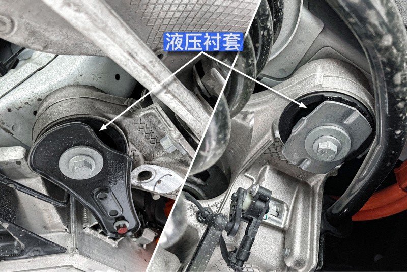 后面车架用料更是下足了猛料,竟然采用了同级少见的铝合金材料,由两根粗壮的过梁和两端与悬架相连的铸铝件焊接而成,形成了一个结构非常紧凑、轻量并且高强度的全框式副车架。而后副车架于车声之间由液压衬套相连,在行驶过程中可以有效过滤多余的振动,是提高行车舒适性重要零件之一。