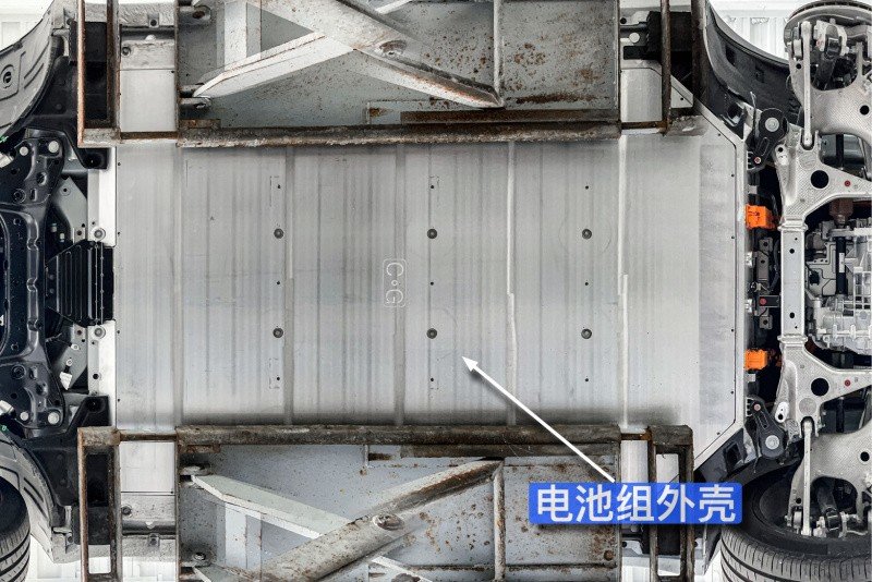 底盘中间位置是最为重要的电池包位置所在,所以极氪001采用了厚度相当的铝合金壳体保护起动力电池组。铝合金材料有良好的散热性,可以使电池始终保持在良好的工作温度,而且整体质量也相比钢材料来的更轻。