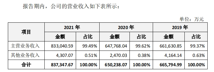 业绩层面上看,报告期内箭牌家居的盈利能力碾压多数同行业上市公司。2019年-2021年度,箭牌家居营业收入约为66.58亿元、65.02亿元及83.73亿元;归属于箭牌家居股东的净利润约为5.56亿元、5.89亿元及5.77亿元。