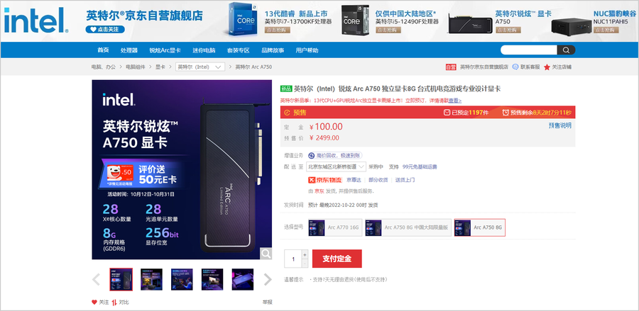 近日,英特尔锐炫A770限量版和锐炫A750限量版显卡正式上架。英特尔所说的限量版,可以看作是英特尔的公版卡。