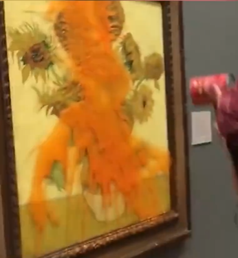 英国当地时间10月14日中午11时(北京时间14日18时),英国国家美术馆内馆藏的梵高名作《向日葵》,被两名环保组织成员泼了两罐番茄酱罐头。