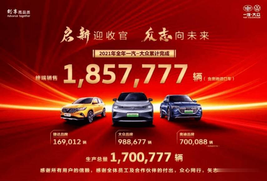 根据一汽大众官方透露的数据,捷达2021年全年共销售169,012辆,和预期的20万辆销量还有3万多辆的差距。捷达高管此前表示,希望捷达能够保持1%的市场份额,同时实现20万辆以上的年销量。早在品牌独立的时候,大众曾对独立的捷达拥有更高的期待。当时大众的一众高管纷纷表示,捷达将在品牌成立三年之后销量突破40万。