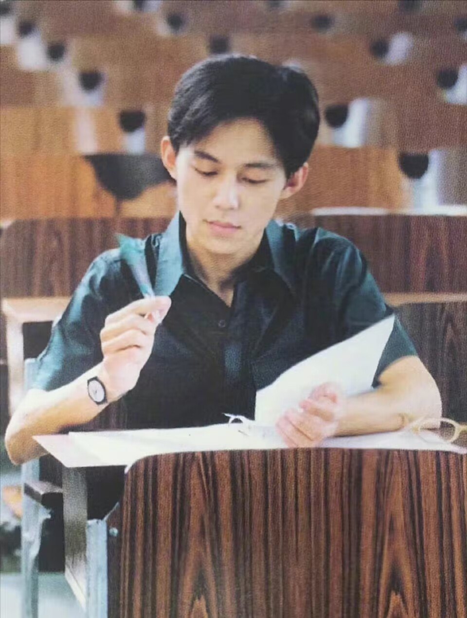 近日,有媒体曝光何炅年轻时的个人写真,引发网友热议。照片中,年轻时的何炅一头短发搭配黑色衬衫,他看起来十分稚嫩,那时的他似乎处于学生年代,只见他一脸认真地在学习,拿起笔做笔记,专注的样子让人着迷。他俊俏的五官棱角分明,不愧是儒雅帅气的美男子,颜值超高,气质出众。