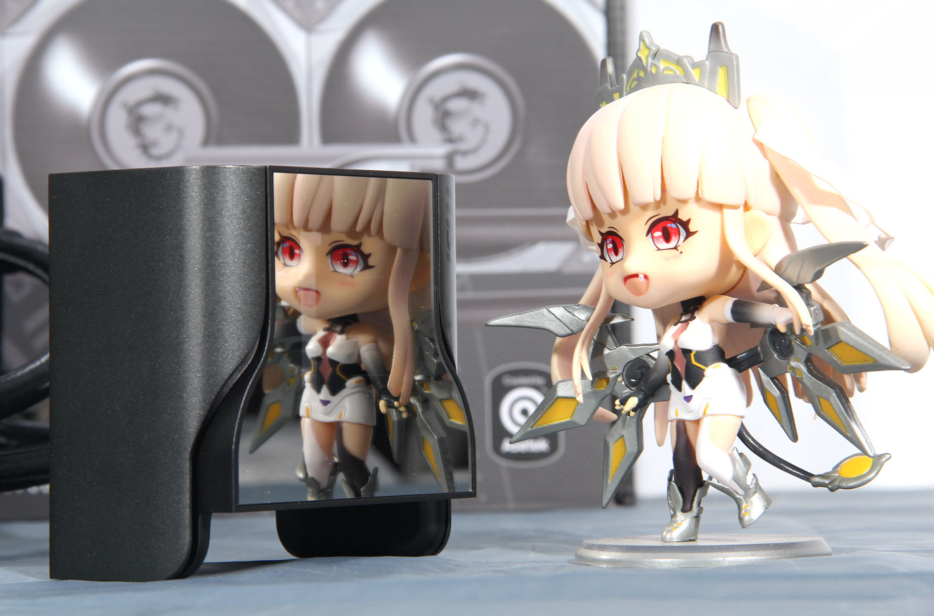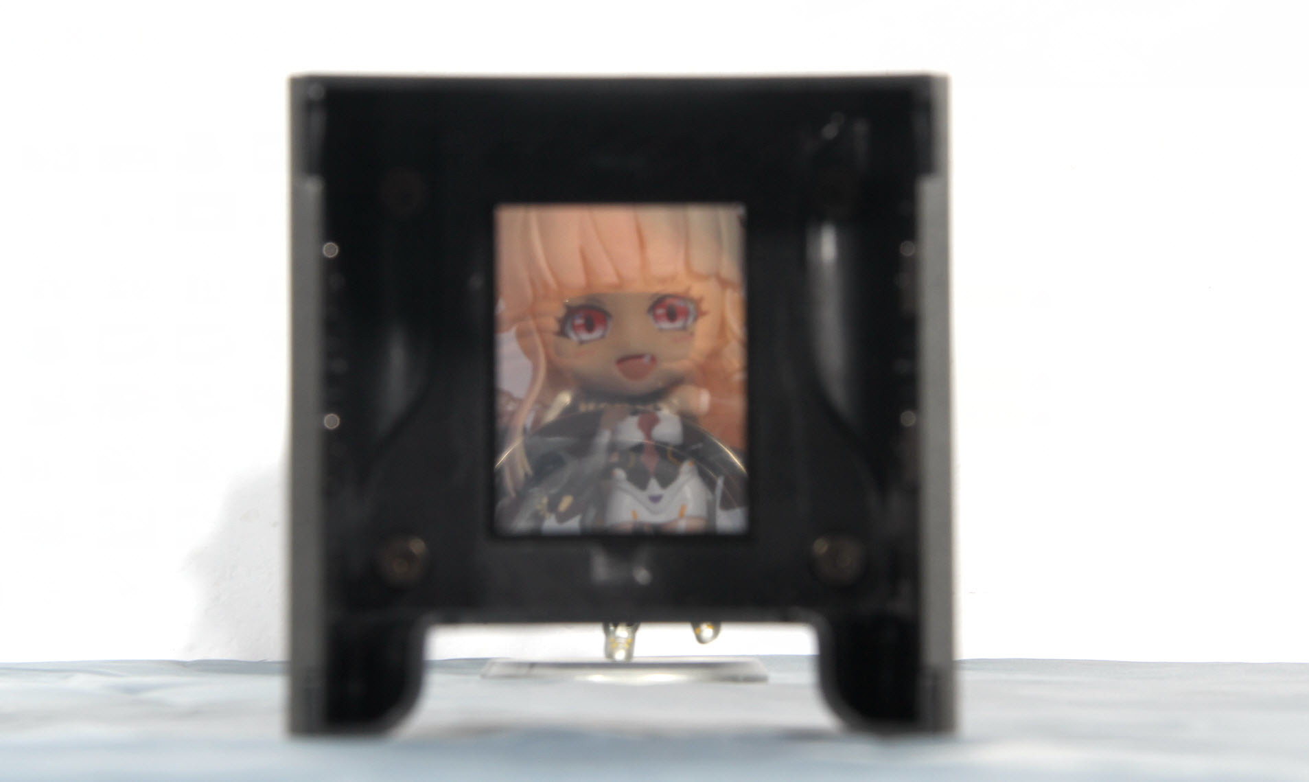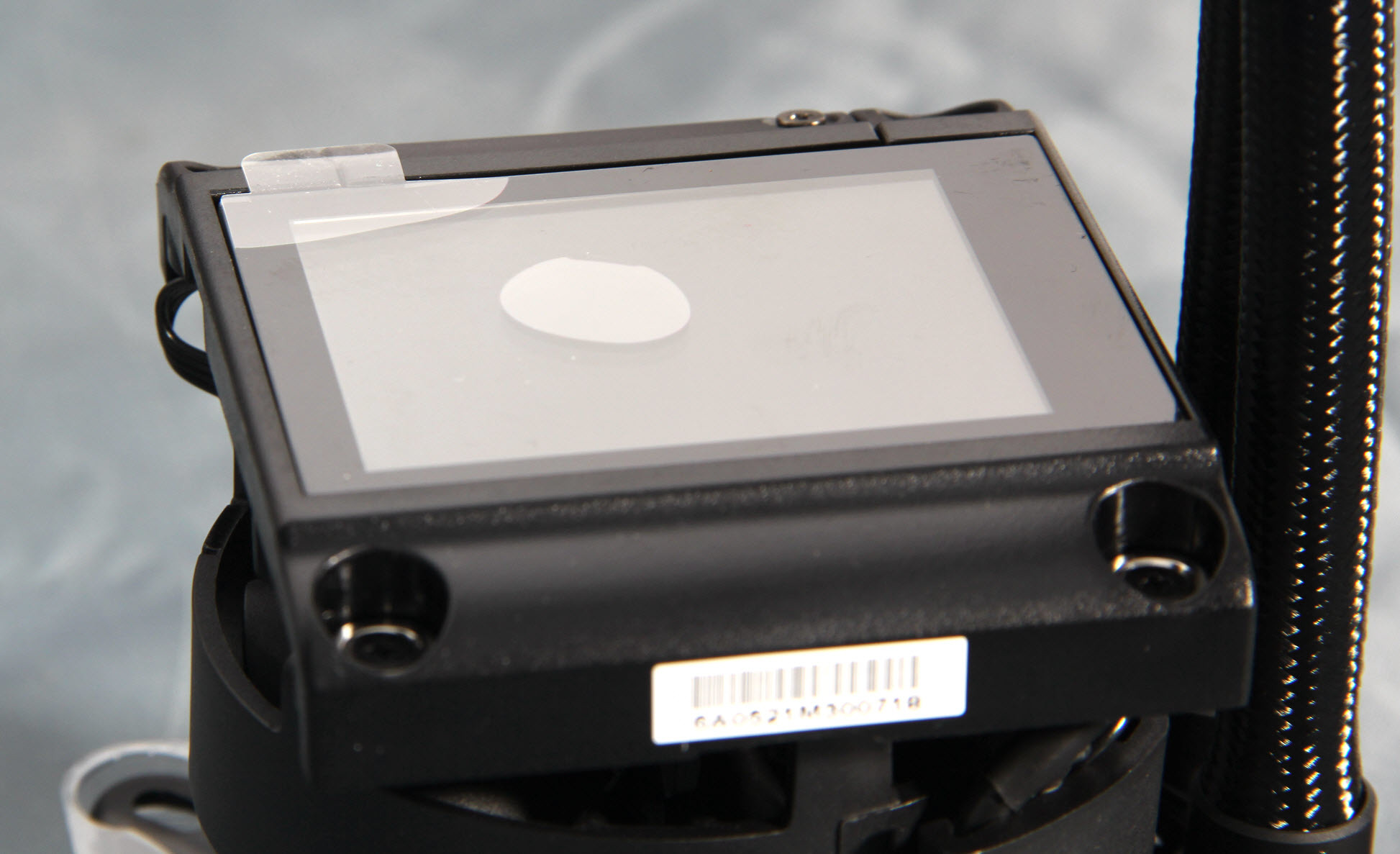 而在整体冷头的外面还有一个接近正方形的磁吸外壳,表面还有一个透光镜面设计,外壳采用磁吸式让维护也变得更轻松。水冷头的内部有一块2.4英寸的IPS屏幕,这个外壳最大的用途也是保护这块真彩屏。
