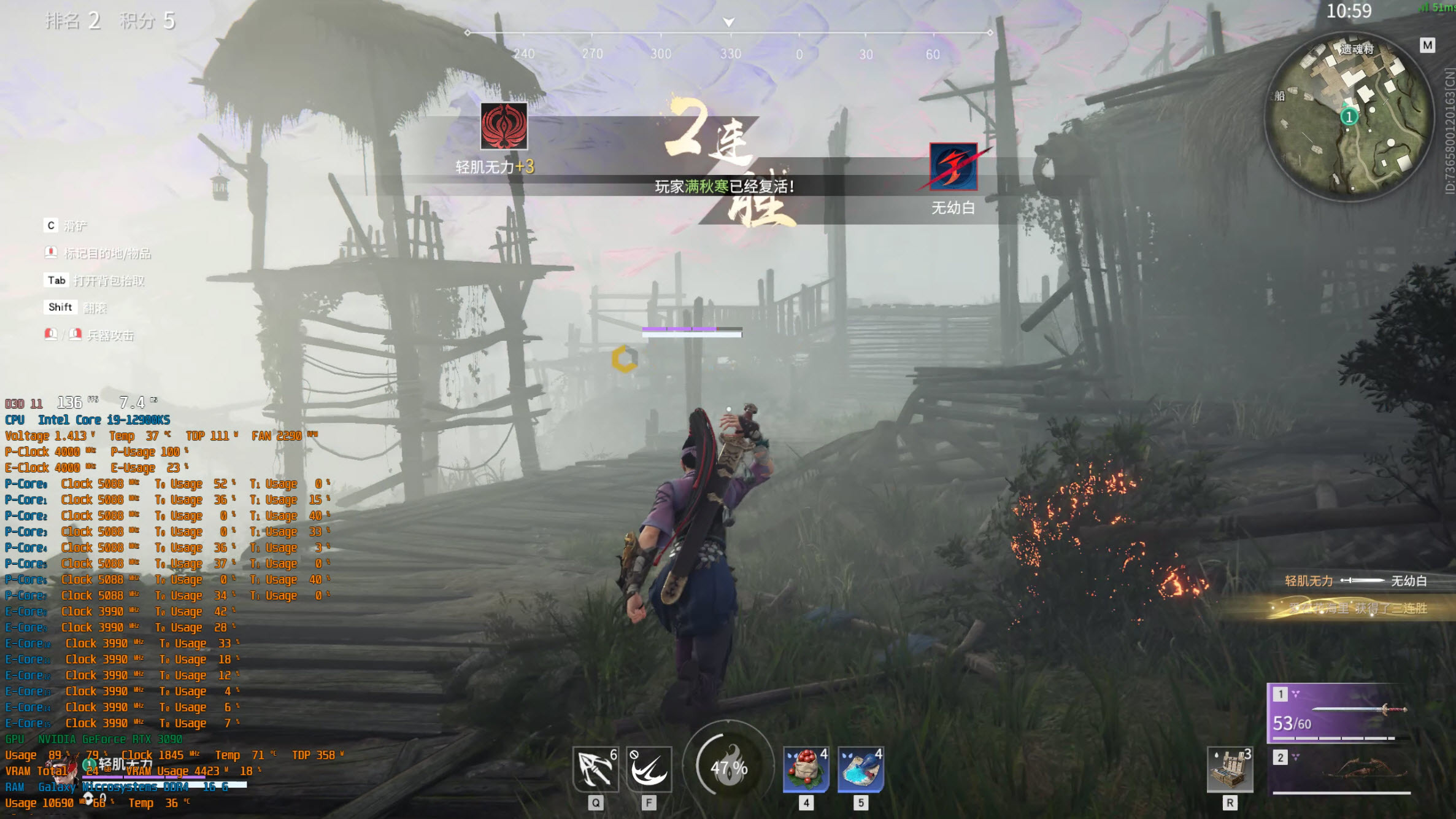 所以还是游戏测试更省心些了!《永劫无间》实测发现战神压12900KS真稳,平均都不到50℃。