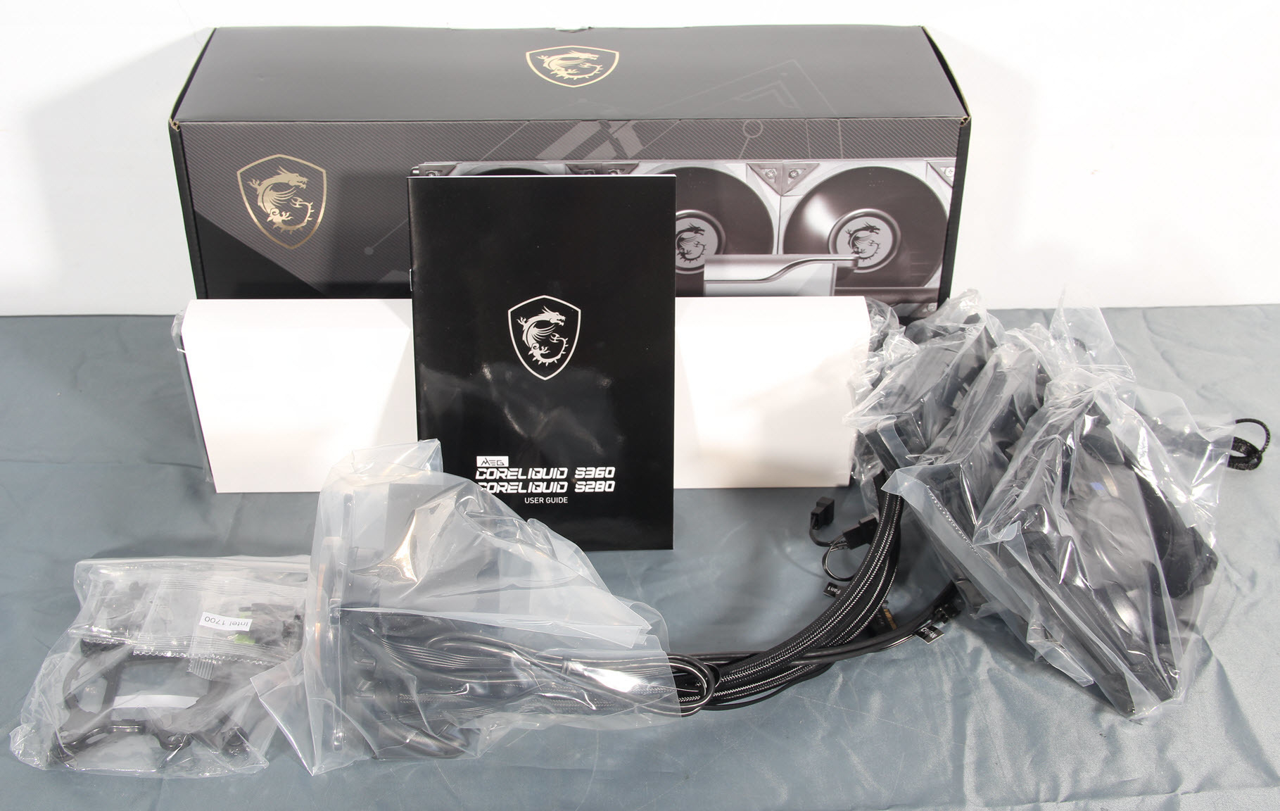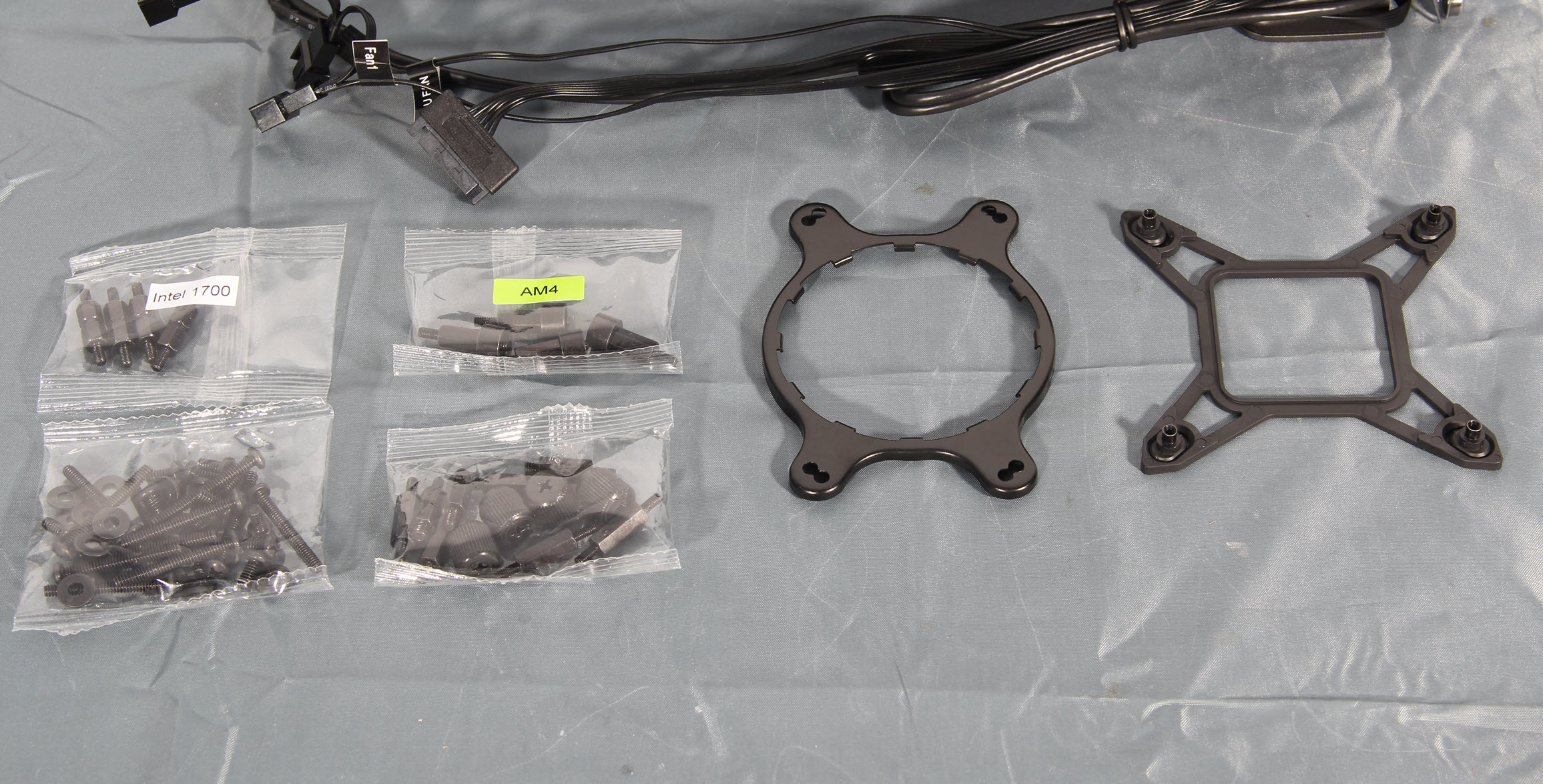 S360战神在扣具上、风扇上、冷排上都是全黑化处理,三把扇子沉甸甸的、一套360水冷总成,安装水冷必要的扣具和螺丝,仅此而已,一看扣具便知是Asetek的正宗血统了。