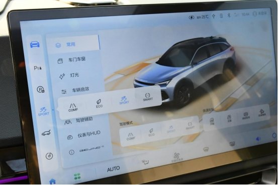 在驾驶模式上,北汽魔方提供了COMF(标准)、ECO(经济)、SPORT(运动)、SMART(智能)四种模式。其中各驾驶模式之间也有着较为明显的区别,经济模式下动力输出较为慵懒,相比运动模式就明显激进了不少。而提供的SMART(智能)模式,车辆可以根据油门踏板的深浅来自动调节动力输出,这一点也是再次丰富了驾驶员的驾驶趣味。
