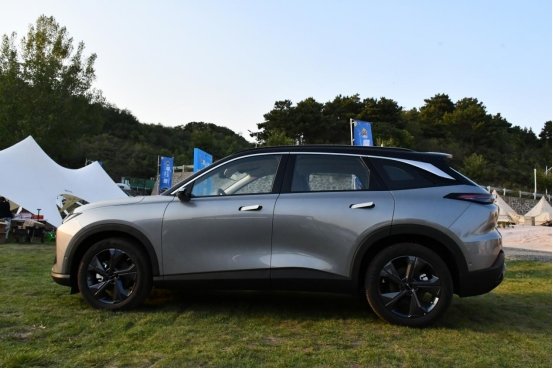 视觉来到车侧,北汽魔方延续了SUV车型一贯的风格设计,从A柱向后逐渐下压的车顶线条,搭配上双色轮圈和隐藏式车门把手,同样是展现出了不错的年轻属性。