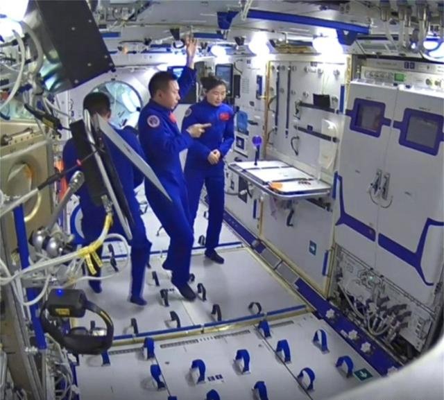 在本次“天宫课堂”中,3名航天员在中国空间站问天实验舱内介绍展示了工作生活场景,我们会发现在航天员的脚底下,有很多“把手”,航天员们用手攥住这些把手或者把脚钻进去,从而获得动力向前运动或者固定住身体状态,防止身体飘起来。航天员向我们介绍了此次的问天实验舱,里面组装了生命生态实验柜、生物技术实验柜等各个科学实验柜,还有科学手套箱、低温存储柜等科学实验设施。科学手套箱为我们提供了一个密闭洁净的操作空间,让我们的实验更加便捷可控,未来问天舱内还将安装一台灵巧机械臂和一套显微操作系统,在它们的共同配合下,就可以给细胞做手术、穿刺,操作精度可以达到5微米。