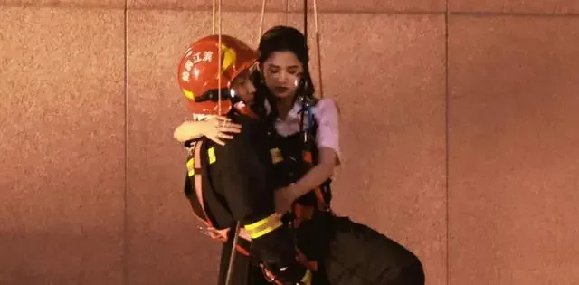 黄景瑜、张婧仪新剧《他从火光中走来》一组片场照曝光,饰演消防员的黄景瑜悬挂在半空中抱着女主张婧仪。而另一个网友拍摄画面却换成了黄景瑜与男替身。