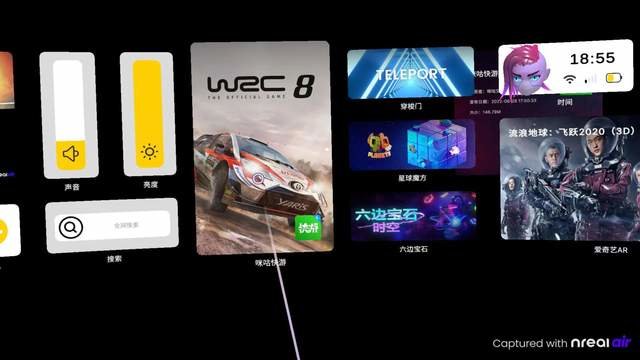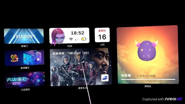 环形幕布特别像智能电视屏幕的3D版,里面自带了很多常用AR游戏、AR观影、AR运动等APP,常见的影视有爱奇艺、抖音,看球赛有移动云,玩游戏有咪咕快游。最重要的是可以随时随地观看、畅游,出去的时候带上太方便了。