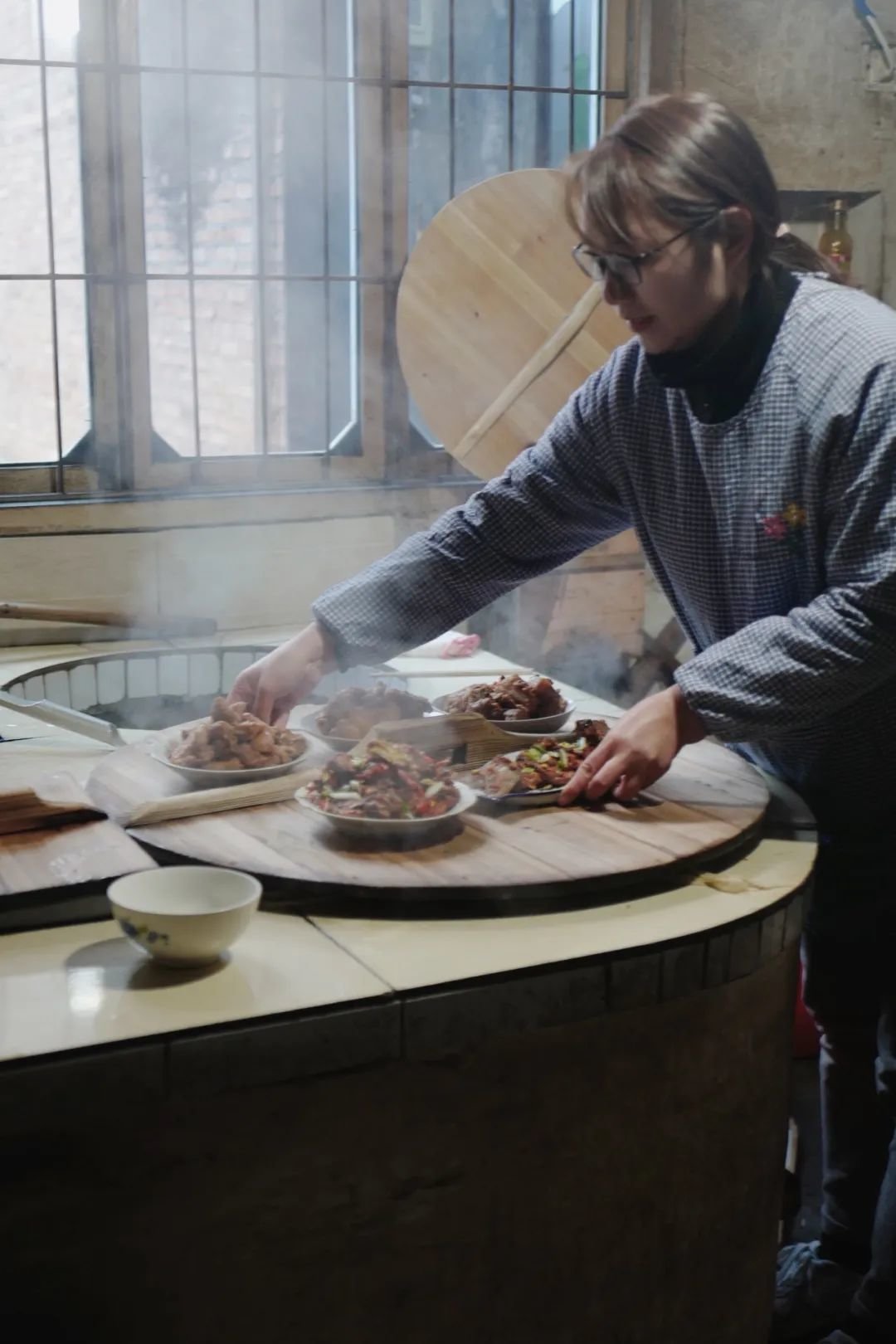 汪娜这个“手感”指的也是开化苏庄女人的那种因为能干而显出的麻利劲。汪娜的妈妈是苏庄隔壁杨家村里,但苏庄人嫁娶祭祀上梁这些大节日,只要需要烧“村宴”,主人家就肯定会包好红包求她出马。用时髦点的话说,她是远近闻名的资深“炊粉女神”。村宴讲究的是大锅大火,慢菜快做,人多稳做,汪娜的妈妈靠的“手感”功夫,如同流水席中力挽狂澜女侠,自如又从容。