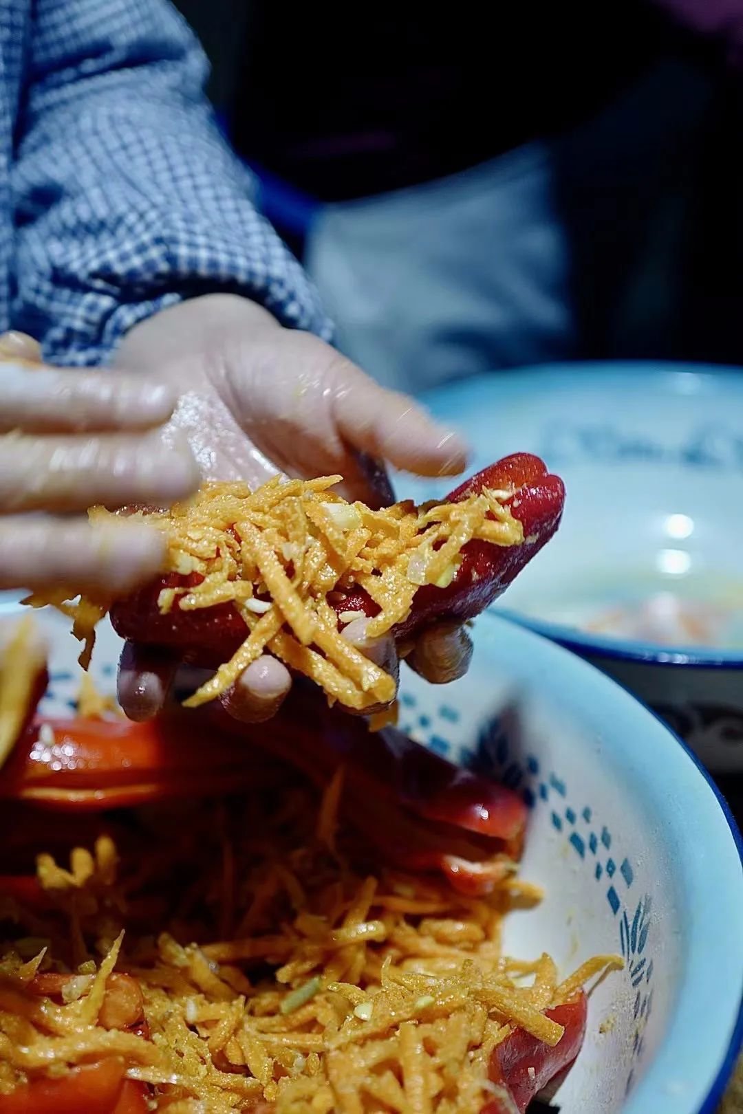 她说今天山茶油的时价是五十一斤,我看她放油粘粉不撒手的劲头,突然意识到,素菜比这里的荤菜娇俏多了!“但是辣椒包真正好吃的时候,应该是用开化本地的夏天土辣椒,配山茶油。”我也同意,土辣椒的香辣加上南瓜的甜感,就像甜心坐上公路摩托车一样,就性感驰骋起来。