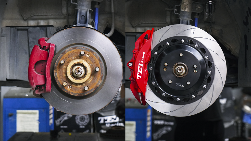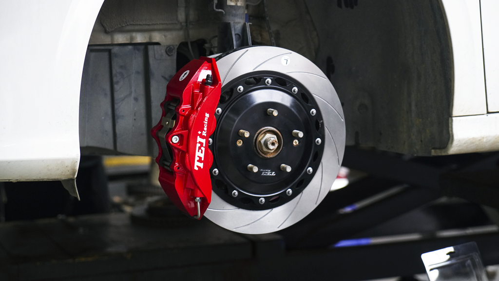 毕竟,原厂的刹车卡钳是一个前二后一浮动式活塞卡钳。并且还是个小活塞泵,在高速的情况下是绝对不够用的;而且你的刹车距离会变得很长,导致你刹不住而发生交通事故。