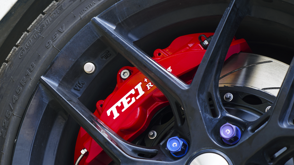 而缤瑞车主找我们升级刹车系统,一是觉得原厂制动及脚感很差,颜值一方面也是满足不了车主。2021款吉利缤瑞改装18寸轮毂,考虑到预算安排一套颜值及性能担当TEI Racing P40NS+街道版四活塞刹车套件。