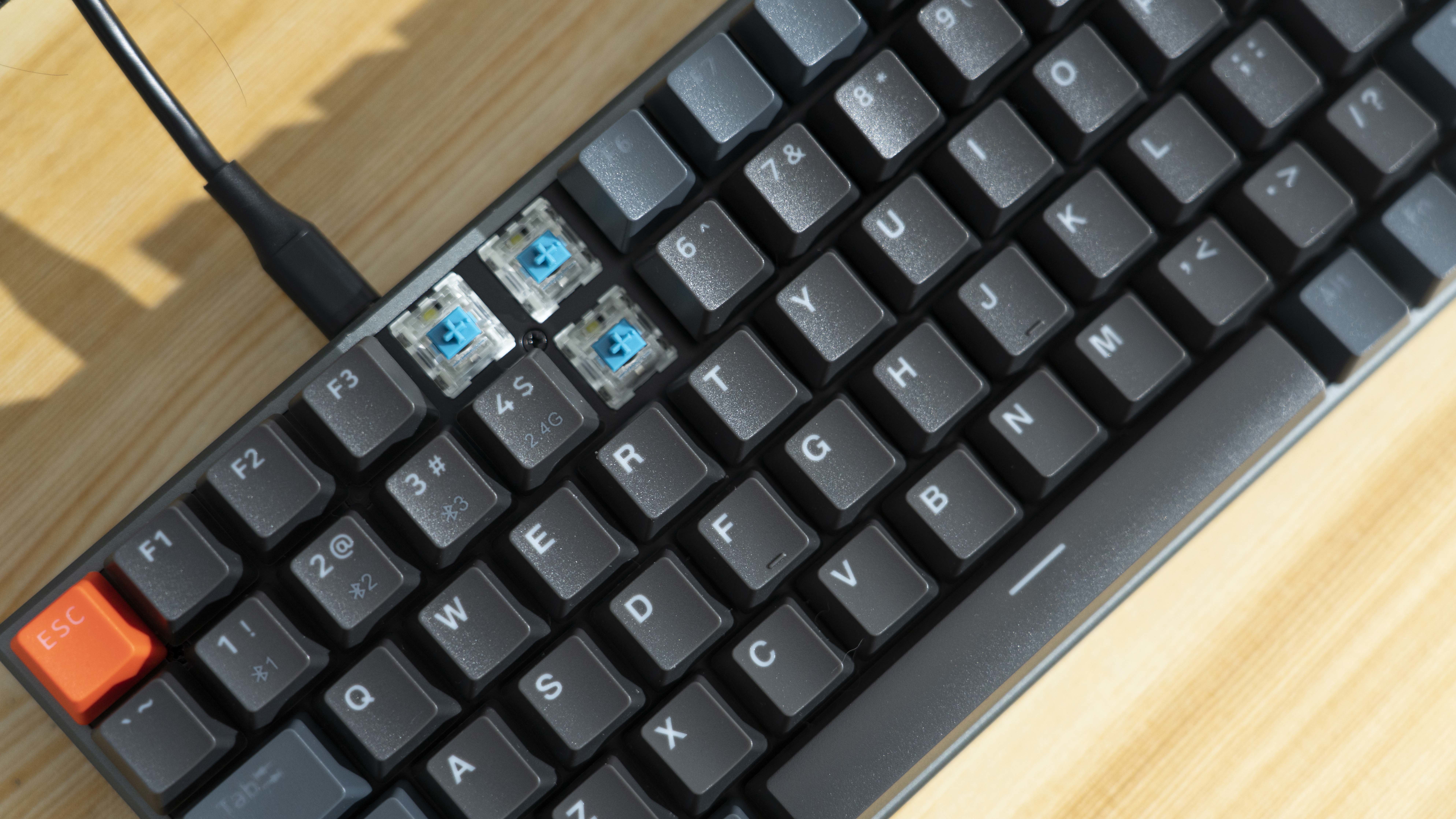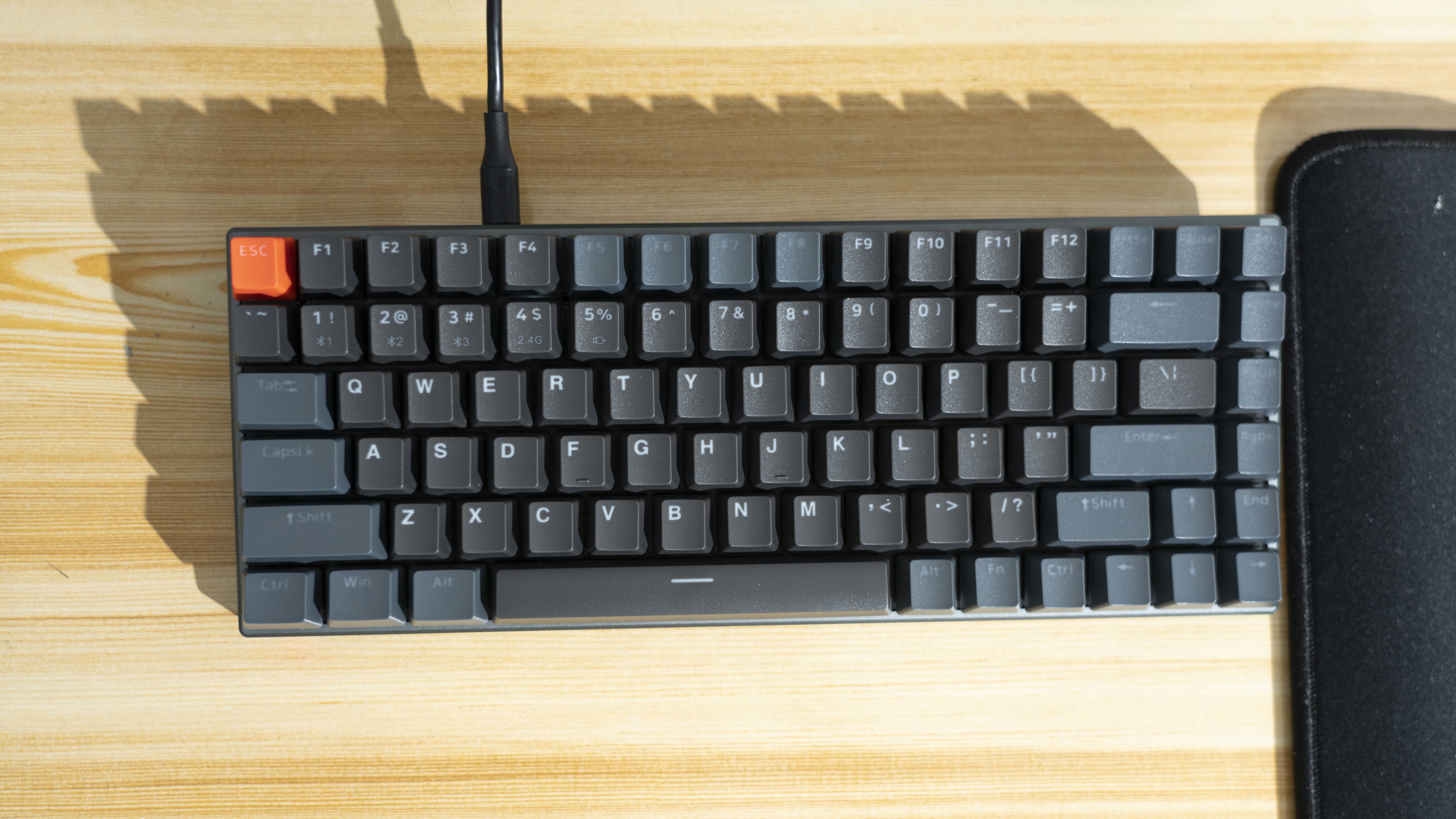 键线分离设计,4档背光亮度可以调节,全84键无冲突设计也增加了可玩性