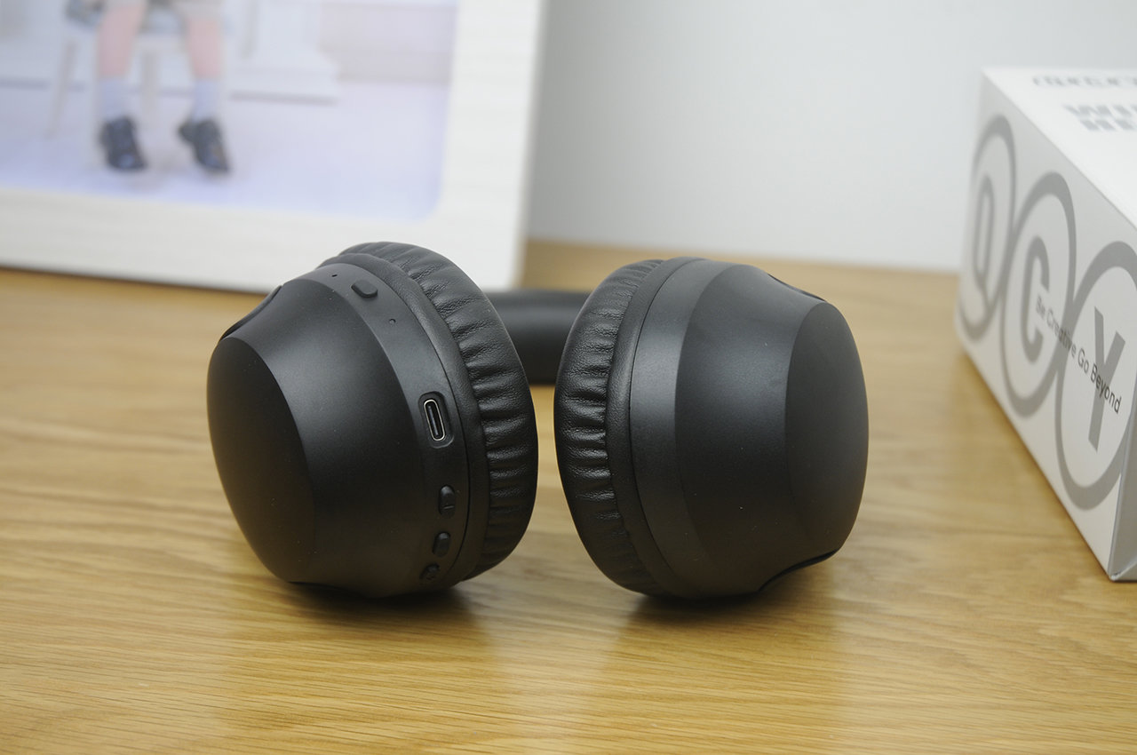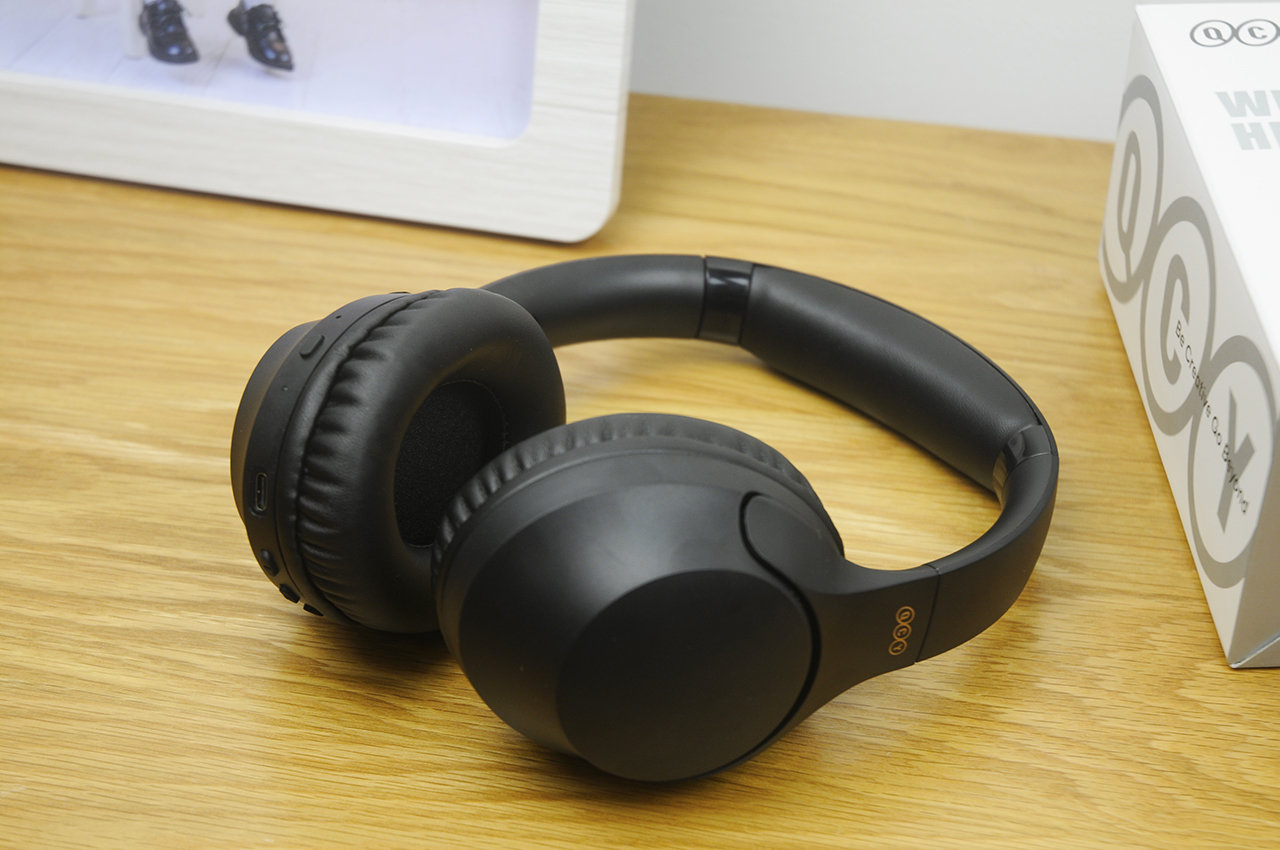 在外形上看起来就是传统的头戴式耳机设计,不过QCY H2看起来似乎更加圆滑,全黑的配色加上金色的Logo显的耳机简约但又精致。