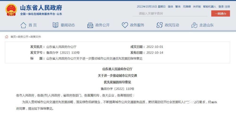 这些城市公共交通发展关注的细节,是山东更好满足经济社会发展和人民群众出行需求的直接体现。而这些细节则来自于山东省人民政府办公厅近日发布的《关于进一步推动城市公共交通优先发展的指导意见》(下文简称《意见》)。