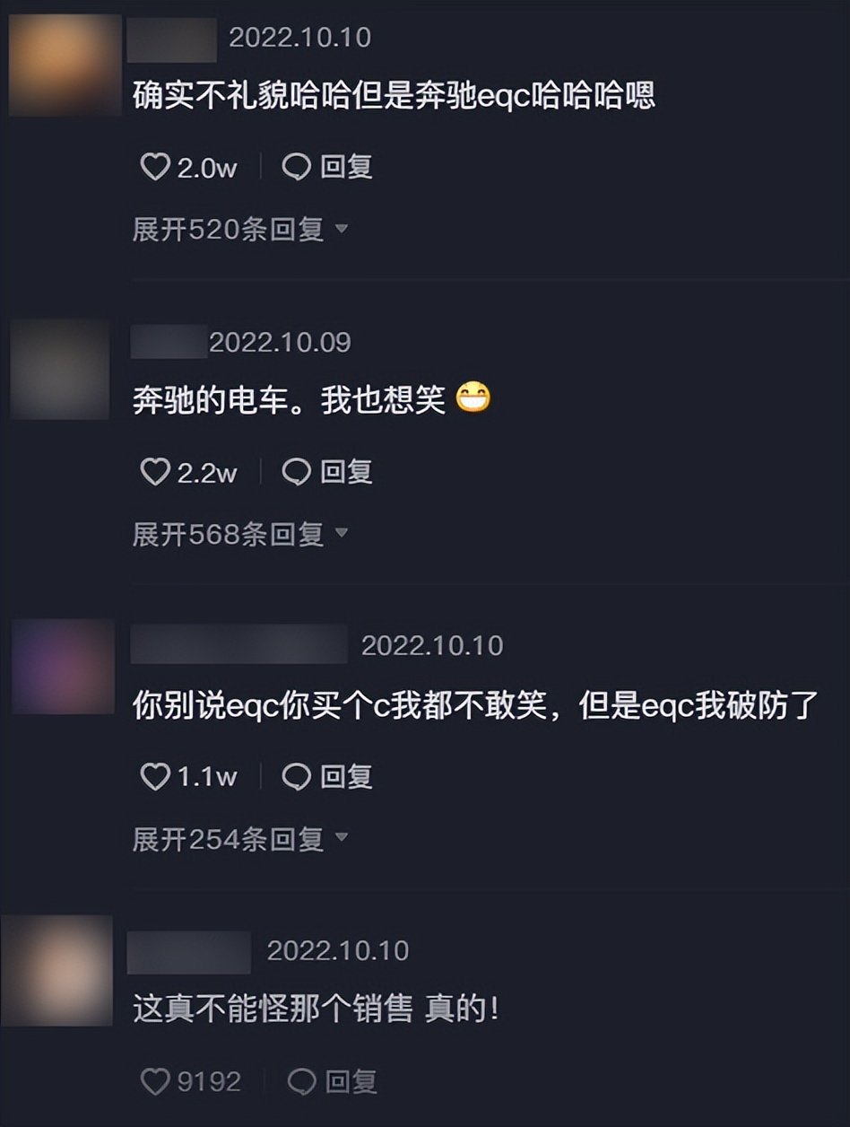 其实,网友嘲笑的并不是奔驰这个品牌,只是奔驰EQC而已。作为奔驰首款纯电动车型,EQC研发了整整4年,妥妥的“油改电”产品,续航仅有440公里,与国内新势力三十万的车相比没有一点优势,奔驰EQC的定价却高达五十多万,“奔驰不坑穷人”是真理无疑。