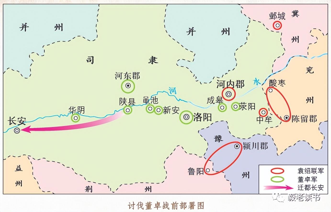 以袁绍为盟主讨伐董卓的阵营中,奋武将军曹操眼看盟军中虽有各路军队十多万人,却终日大吃大喝,不思谋略,于是斥责说,大军瞻前顾后,不敢进兵,会使天下百姓绝望。如果此时能够驻守成皋,控制敖仓,封锁缳辕、太谷二关,占据所有险要之地,再让南阳的军队进军丹水县和析县,挺进武关,以威震三辅地区,天下就可以快速平定。