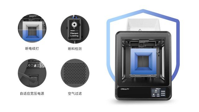 对此,CR-200BPro采用全封闭式设计,运动机构、高温部件、电线电源均无裸露,可防止夹伤、烫伤、触电等。内置空气过滤,有效过滤粉尘颗粒物,保持清新创作环境。350W宽压电源,自适应电压免调拨,使用简单安全。此外,机器具有断电续打和断料检测功能,无需担心模型打印失败和耗材的浪费。