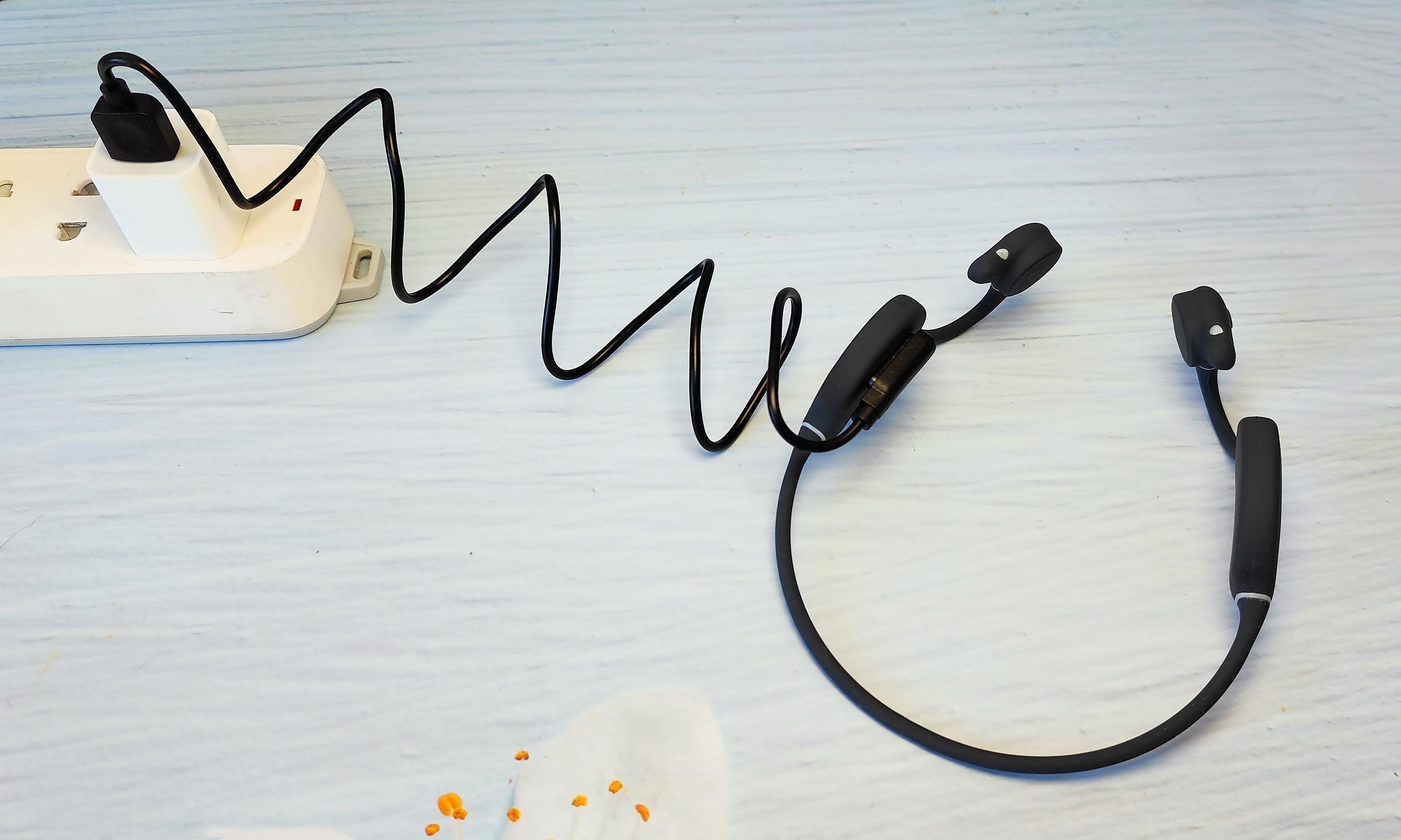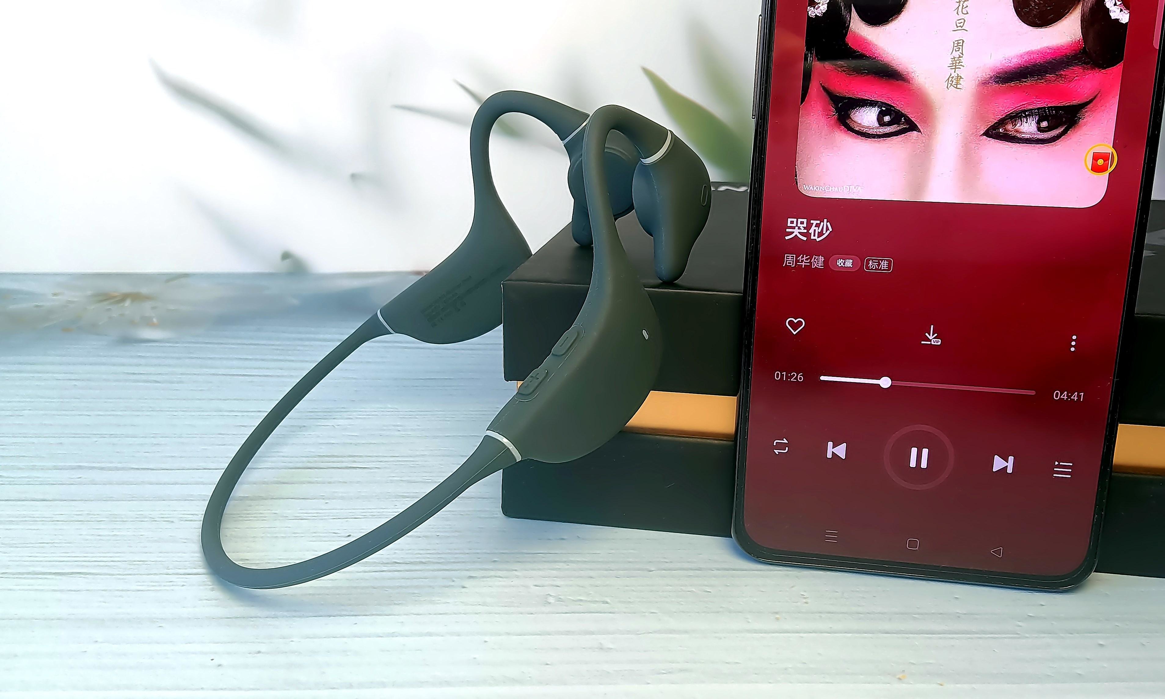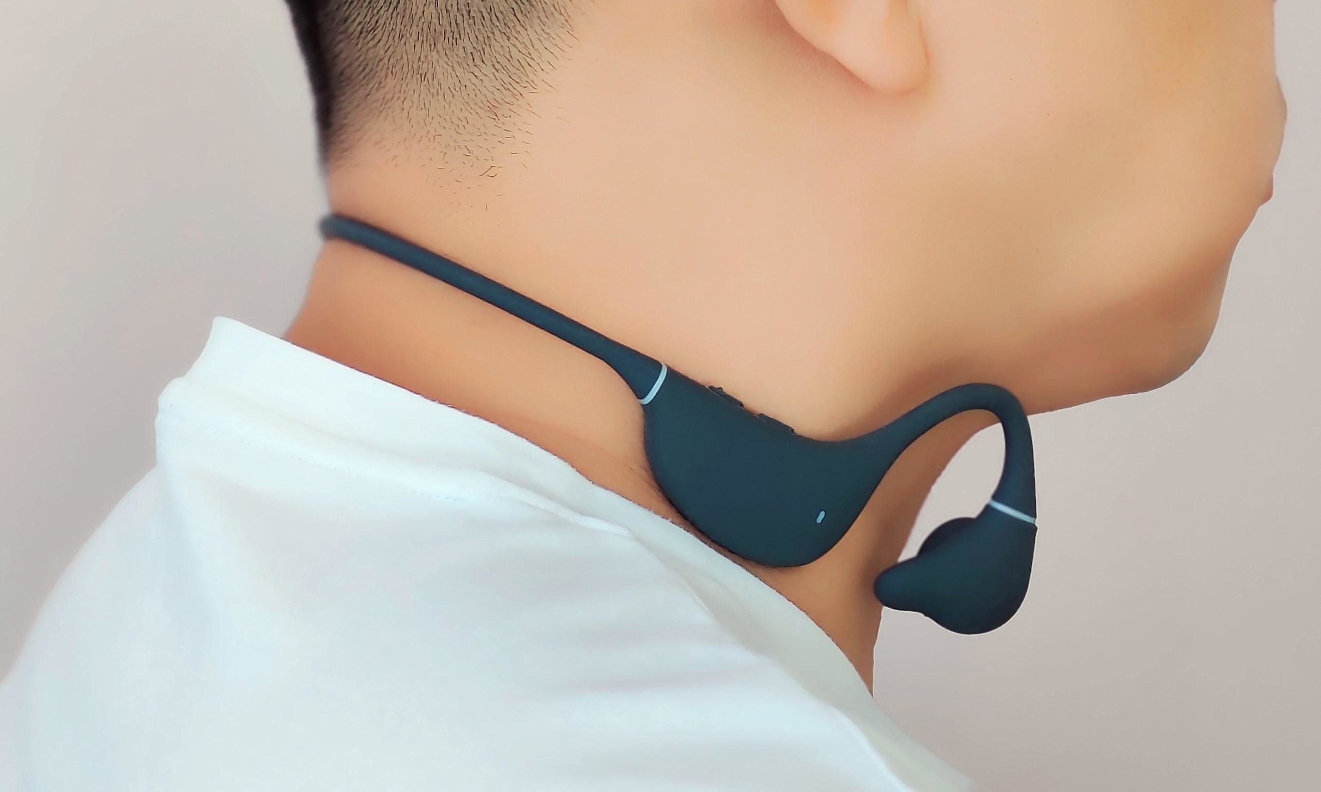 骨传导耳机不使用时还可以挂在脖子上,松紧度刚刚好,外出时又多了一种携带方式。