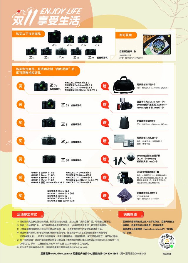 尼康宣布于10月20日至11月20日开启“享受生活(ENJOY LIFE)”双十一促销活动。