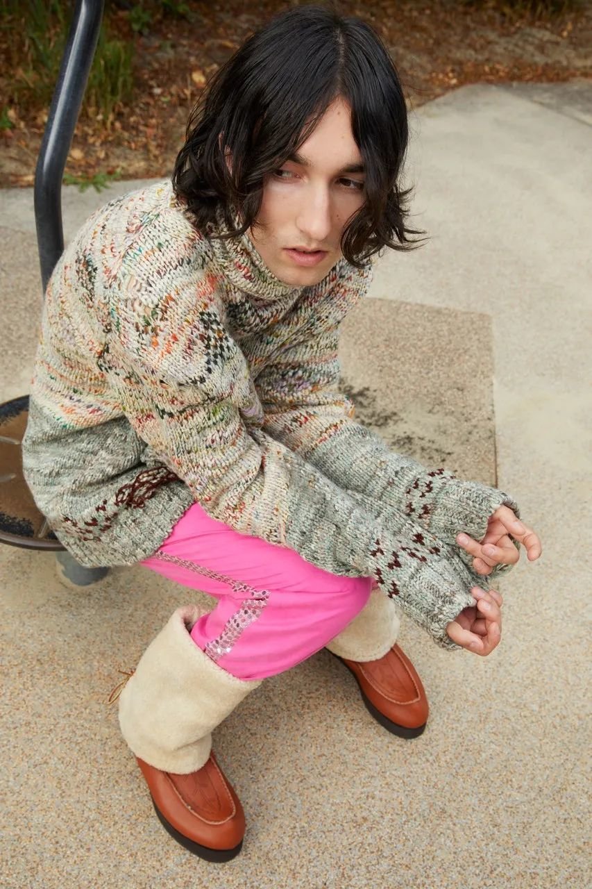 近日,瑞典时尚品牌Acne Studios携手本国传统鞋履品牌KERO,推出玩味十足的胶囊鞋履系列。该鞋款在Acne Studios 2022秋冬男装系列中首次亮相, 款式包括靴子和穆勒鞋,鞋款设计中融入KERO标志性Sami“鞋喙”元素,而鞋底采用较厚的橡胶底,其中一款靴款在靴筒搭载翻折风羊羔毛,结合马鞍棕鞋面,极具秋冬季复古风情。