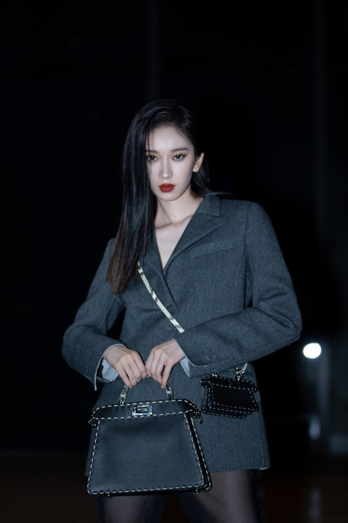 2022年10月17日,刘令姿西服造型夜景写真发布。