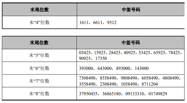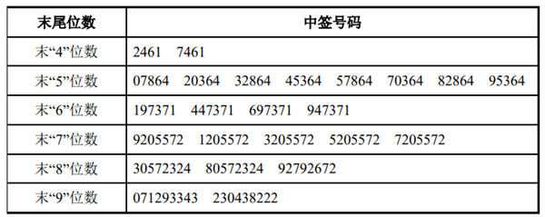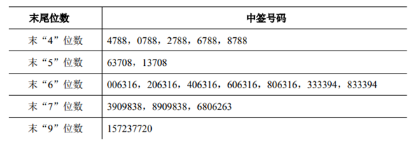 中签号码如下: