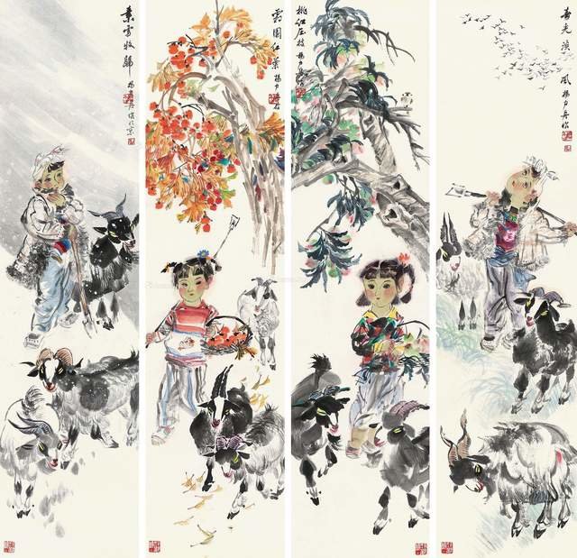 著录:《当代中国画名家四条屏画选》(2005年10月,人民美术出版社)