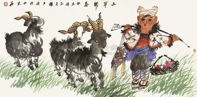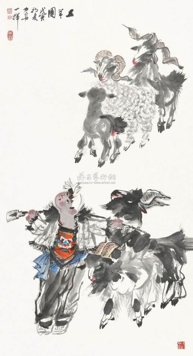 拍品名称:杨力舟 1998年作 五羊图 镜心